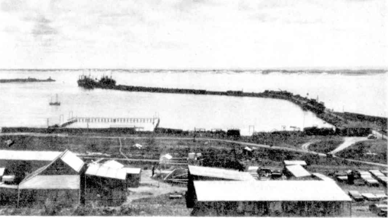 By 1913 there was a wooden jetty (commenced in 1864, and continually extended), protected by a stone breakwater (commenced in 1896). This gave a harbour that was effective except for weather from the north.