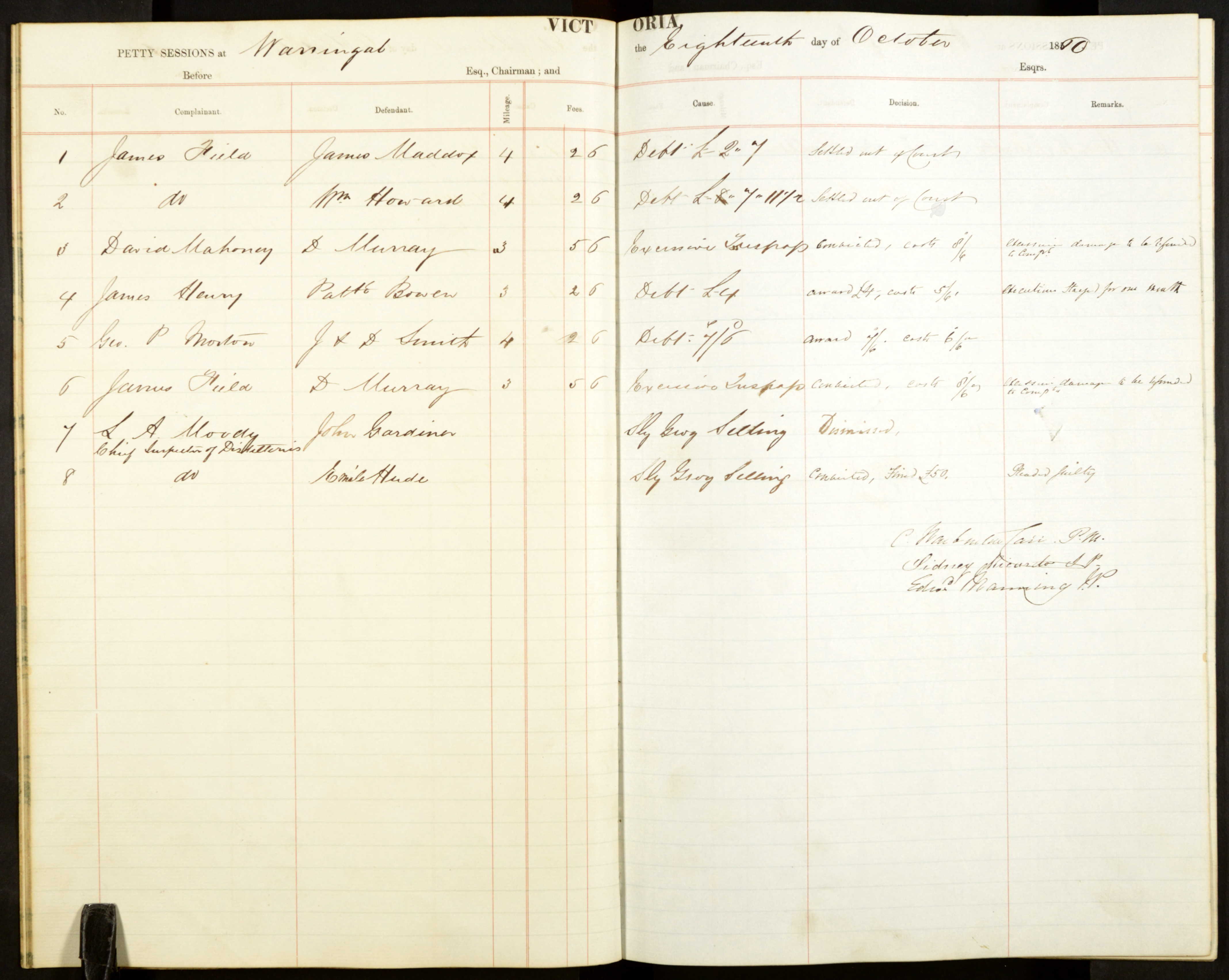 Emile Hude (Jeanne’s husband) was convicted of “Sly Grog Selling” at the Warringal Petty Sessions of 18 October 1860. Here Warringal was later named Heidelberg and would have been the nearest court. He was fined £50, a serious amount.